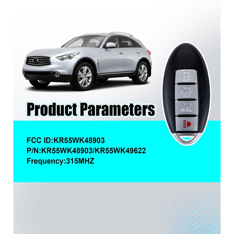 - Compatibility——Work with Various Vehicles -Key replacement kit is designed to fit for Nissan, Infiniti and before you purchase, please check details for car maker, model and year and the original FCC: KR55WK48903/KR55WK49622