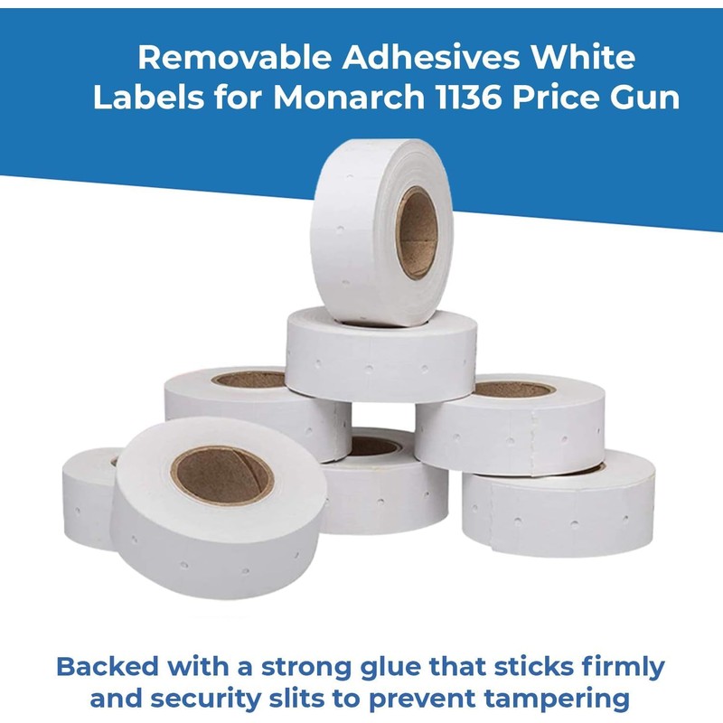 Removable Adhesives White Labels for Monarch 1136 Price Gun - 1 Sleeve, 14,000 Labels