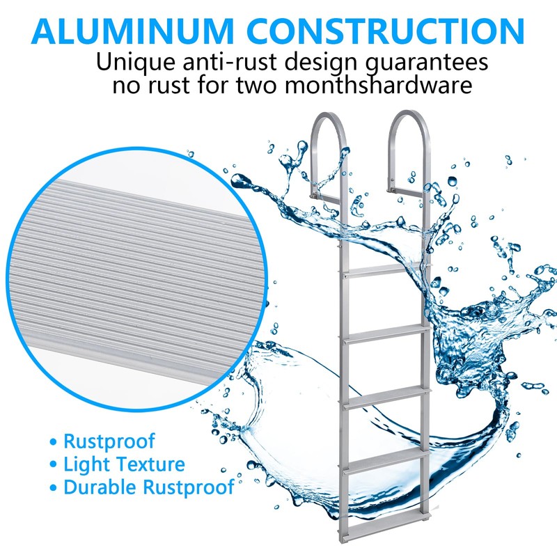 - 500 LBS SOLID&ANTI-CORROSION:Garvee dock ladder is constructed from thicker 6063 aluminum alloy that has been surface-treated with sandblasting to prevent corrosion and wear. Our dock ladder is constructed from thicker 6063 aluminum alloy that has been surface-treated with sandblasting to prevent corrosion and wear. Dock ladder can support 500 pounds of weight, resist scratches and corrosion, and remain solid without deforming.