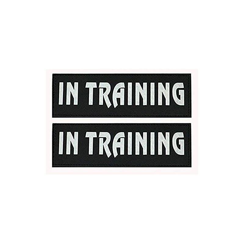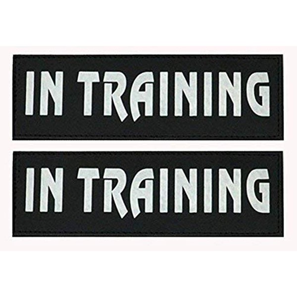 Removable Dog Patches for Vests & Harness - Reflective / 2" x 6" Large White Letter/2 Pack. (in Training, Large(2 x 6"))
