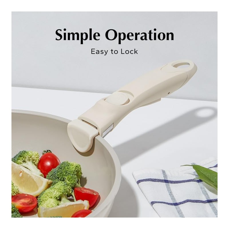 - UNIQUE REMOVABLE HANDLE With professional safety test, it can withstand up to 22 lbs. Just a simple click, and your kitchen journey can begin.