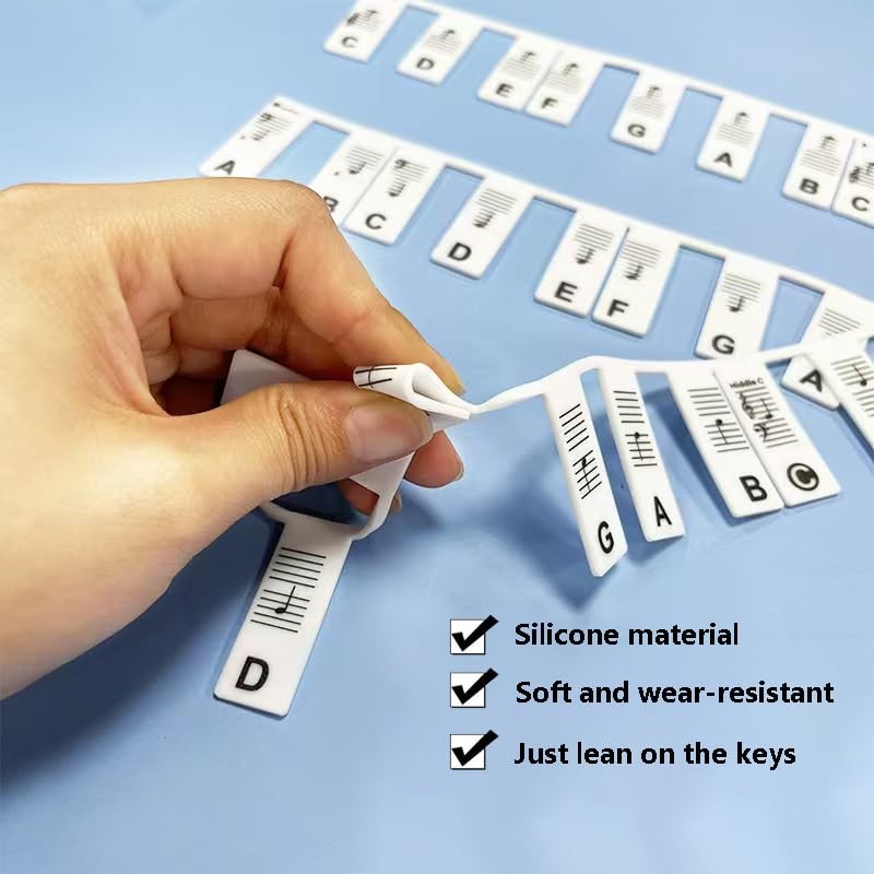 - No Need Stick: Our piano stickers are made of silicone, and connects the labels in series, so there is no need to stick to the keys like piano stickers. Easy-to-install, Easy-to-remove, without leaving any residue, and keeping your keyboard clean and tidy