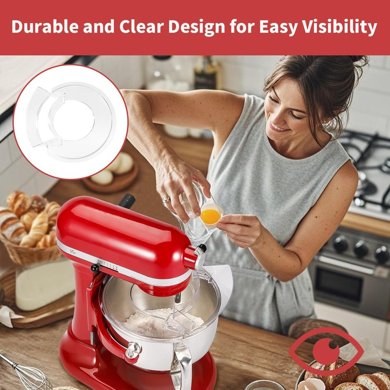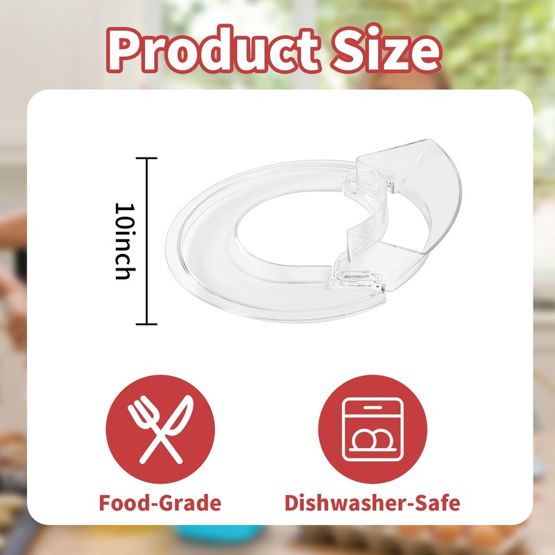 • Made from clear, food-grade plastic, this splash guard lets you see the ingredients inside while mixing, so you don’t need to stop and check frequently. The robust design ensures long-lasting use, while the clear material makes it easy to check the mixing process.