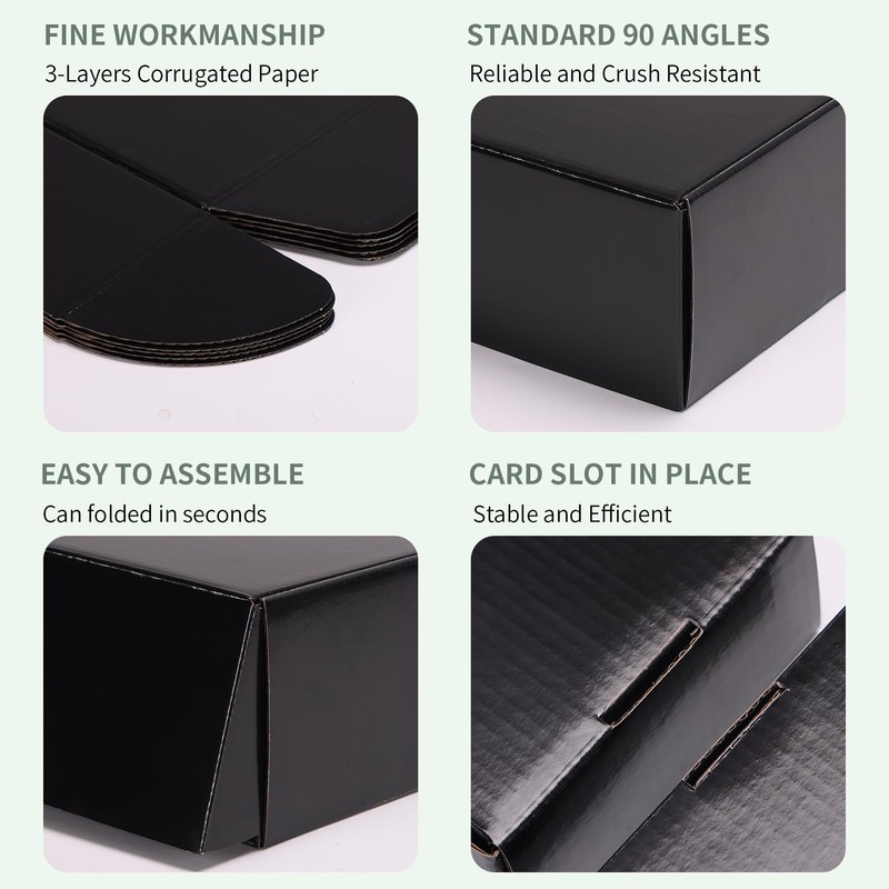 - Practical Appearance: The small shipping boxes are finished with Double-sided black printing which makes the boxes more attractive, and black color are not easy to show scratches.