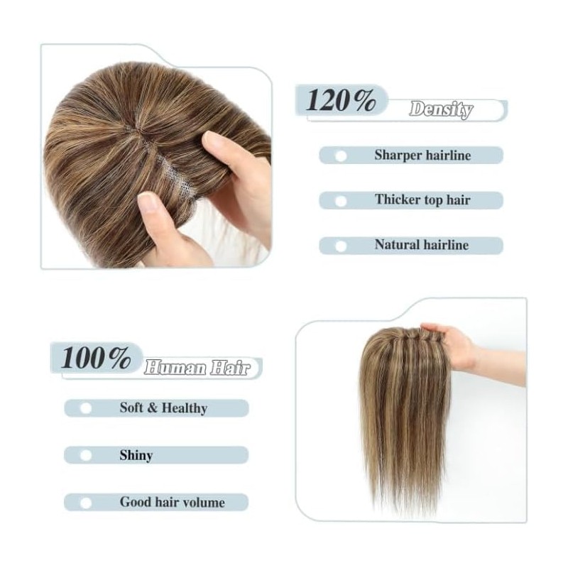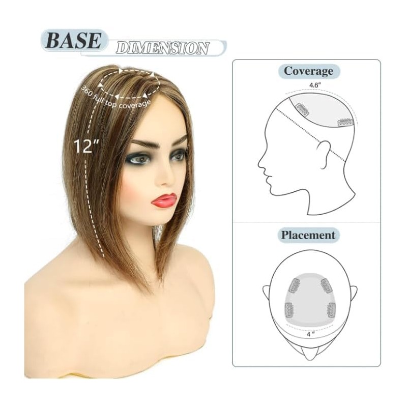 Remy Hair Toppers for Women with Thinning Hair - 100% Human Clip On Toppers (427)