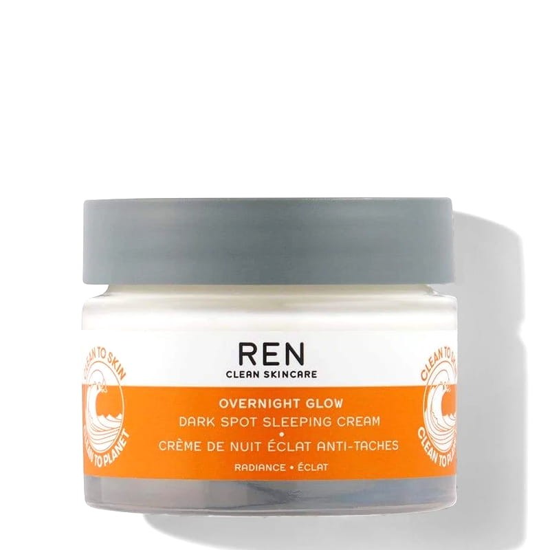 REN Overnight Glow Dark Spot Sleeping Cream is the easy way to a radiant, more even-toned complexion. It's been specially formulated to tackle only areas of hyperpigmentation and uneven skin pigment on all skin tones, without affecting or lightening your natural skin tone. Dark Spot Sleeping Cream works while you sleep to visibly increase skin radiance and hydration without potentially irritating acids. An Encapsulated Algae Complex targets the appearance of excessive pigmentation, while PhytoGlycogen helps recharge skin for a smoother, more radiant complexion. Wake up to visibly plumper-looking and more radiant skin by morning.