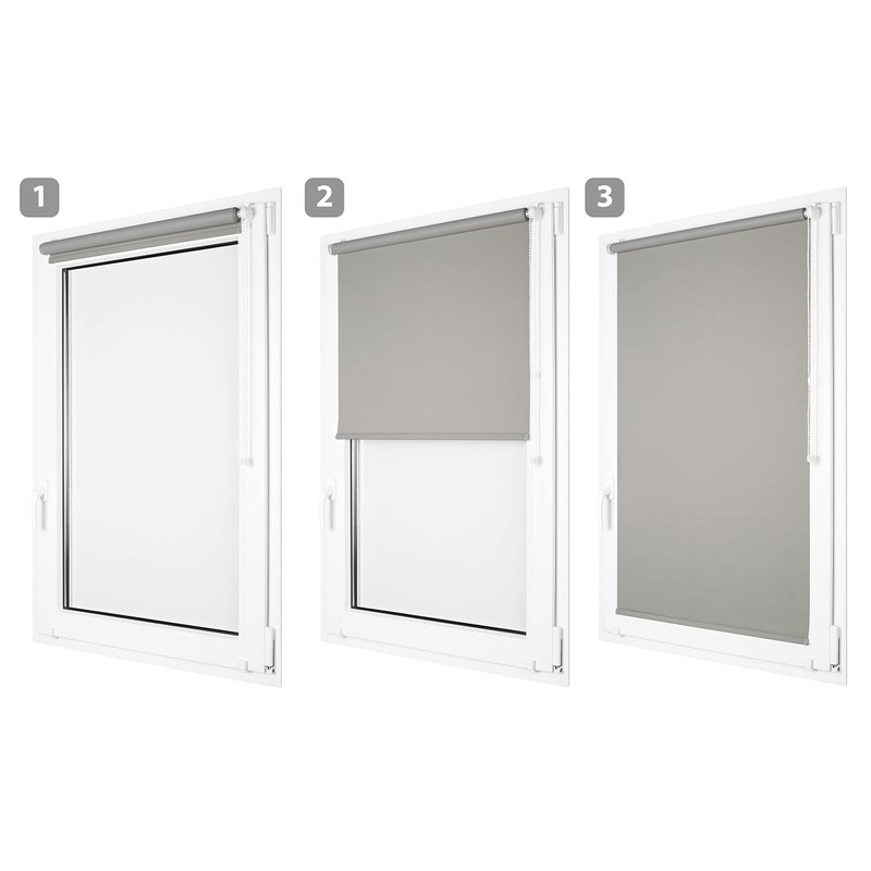 - 100% blackout: the roller blinds for windows without drilling provide effective protection against sunlight. The rubberised material allows 100% blackout of the room. Thanks to the chain tensioner, the chain holds close to the window frame. The cord guides keep the blind close to the glass. The window blinds are attached without drilling, so you do not need any tools to install.