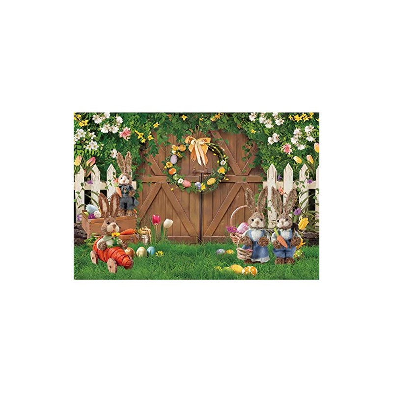 Renaiss 2.5 x 1.8 m Spring Easter Background for Photography Wooden Door Grass Flowers Easter Eggs Rabbit Background Party Decoration Baby Children Portrait Photo Booth Props