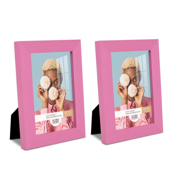 Renditions Gallery 4x6 inch Picture Frame Set of 2 High-end Modern Style, Made of Solid Wood and High Definition Glass Ready for Wall and Tabletop Photo Display, Pink Frame