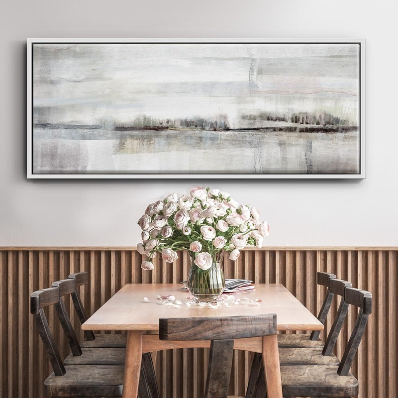 Renditions Gallery Abstract Nature Canvas Wall Art Valley Fair Dreamscape Floater Frame Prints & Paintings for Bedroom Office Kitchen - 12"X30" WHITE GAL032