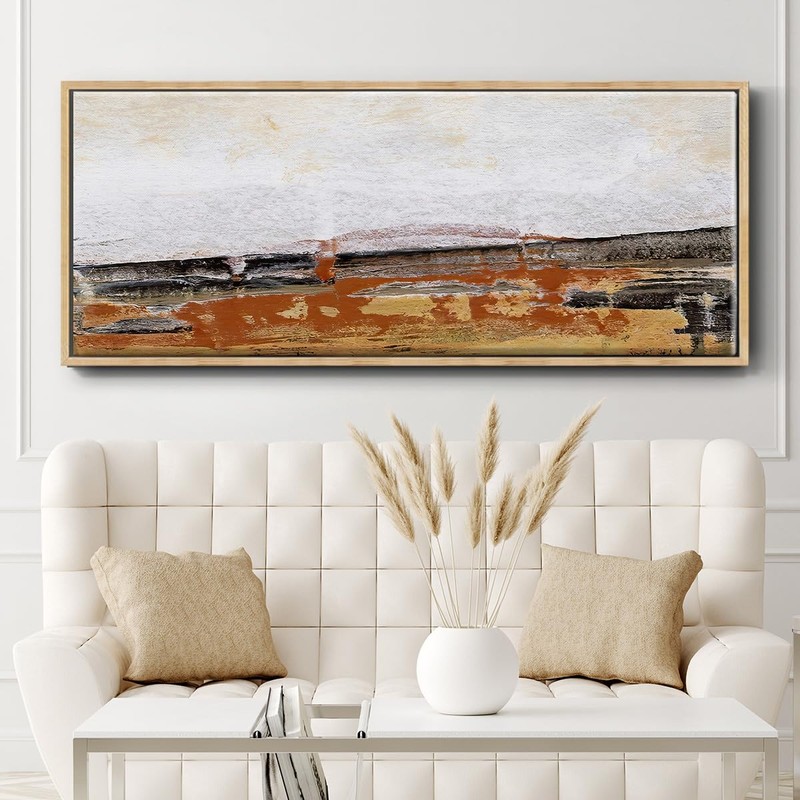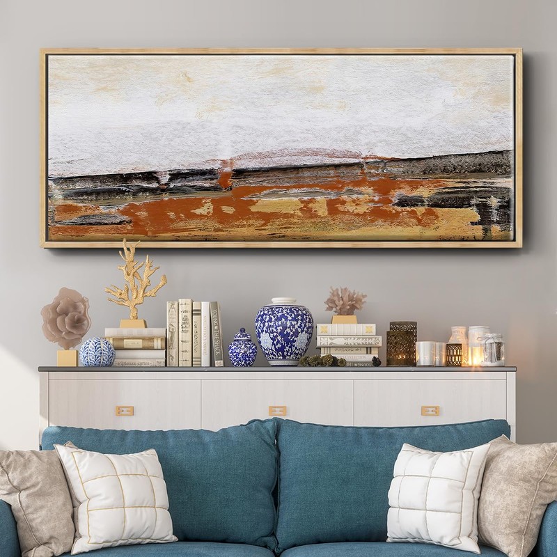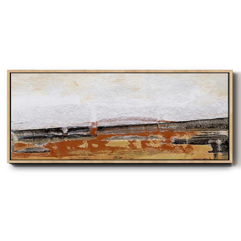 Renditions Gallery Abstract Ochre Canvas Wall Art Colorful Bridge Reflection Floater Frame Prints & Paintings for School Hotel Farhmhouse - 20"X50" NATURAL Frame GAL027