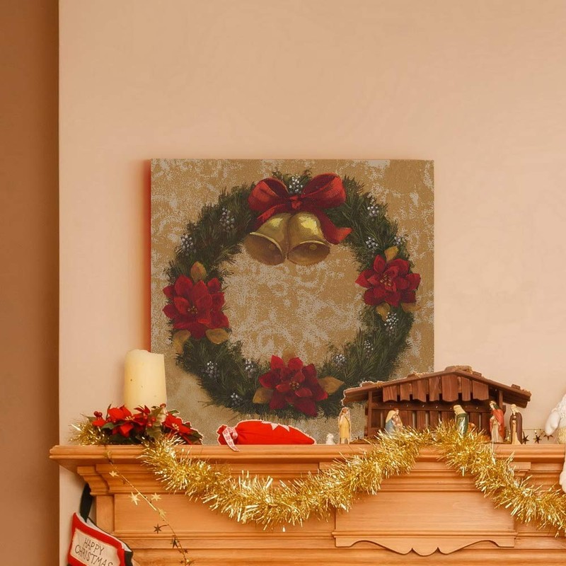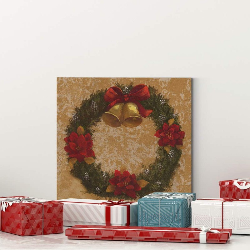 Renditions Gallery Christmas, Canvas Wall Art, Holiday Décor, Angel, Bells, Christmas Tree, Ginger Bread, Egg Nog, Snow Man, Santa, Reindeer -Wreath Warm-10X10