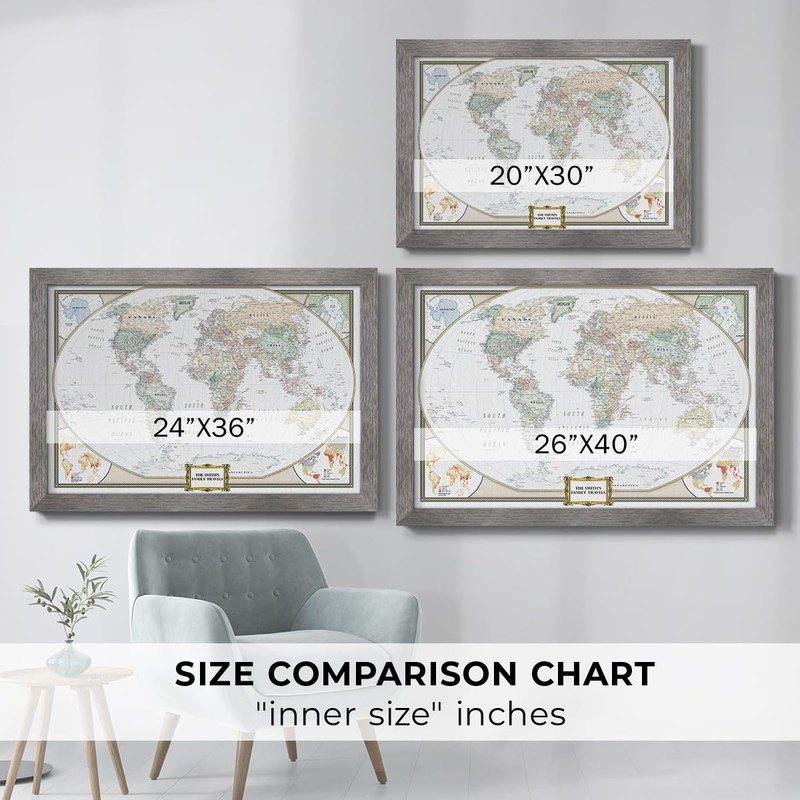 Renditions Gallery Customized World Travel Map with Pins – Personalized Wall Art to Mark Every Journey – An Unforgettable Gift for Adventurers – Made in America LT600
