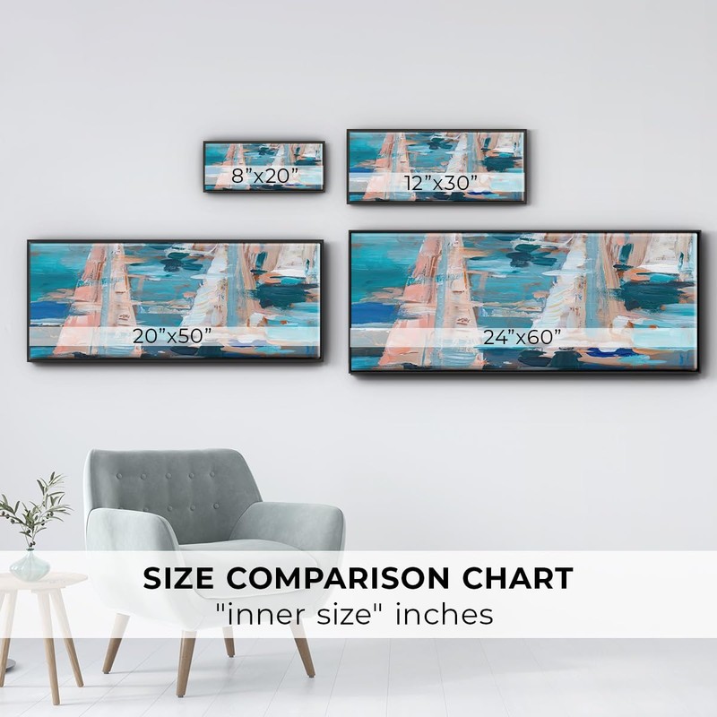 Renditions Gallery Floater Framed Canvas For Office Boat Sailing on Water Floater Framed Canvas Paintings and Prints for Lounge Office Kitchen Drawing Room - 8"x20" Black Frame LT609