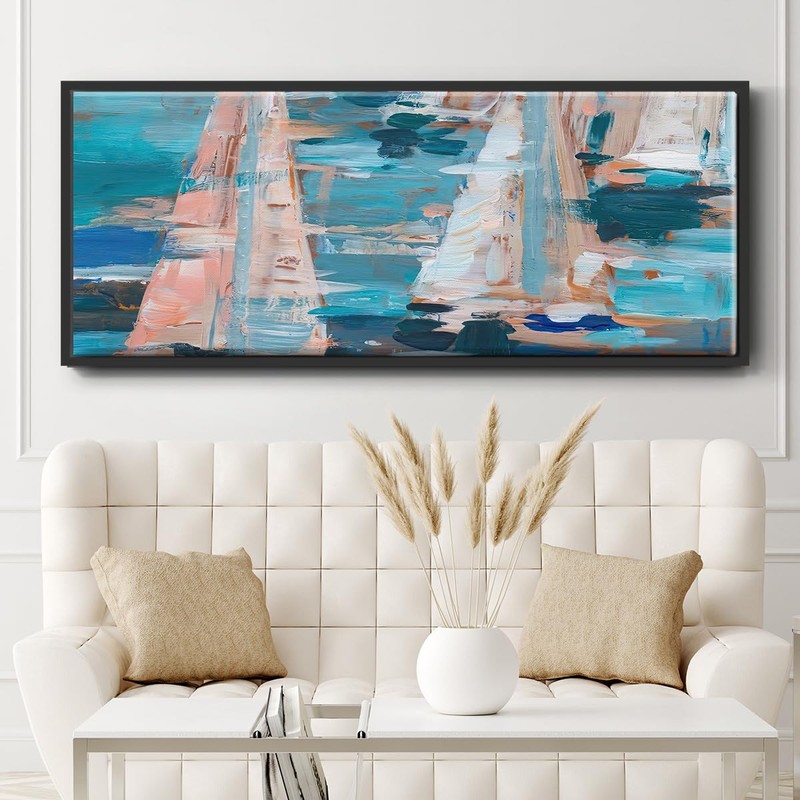 Renditions Gallery Floater Framed Canvas For Office Boat Sailing on Water Flo...