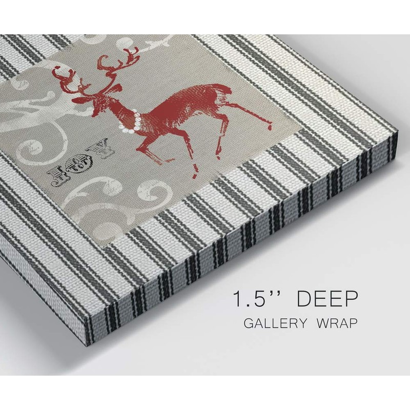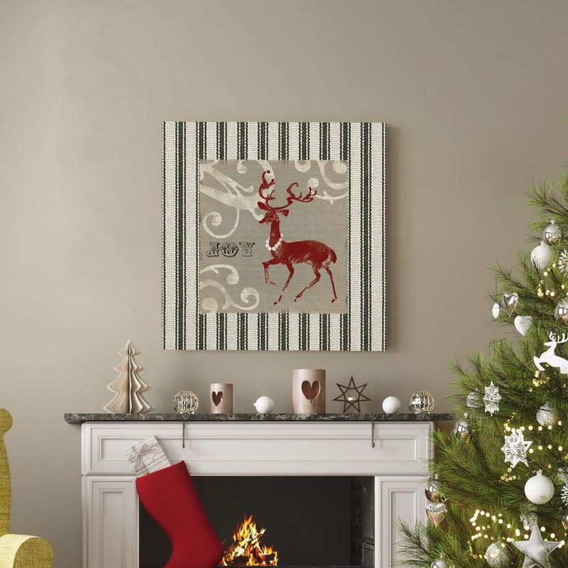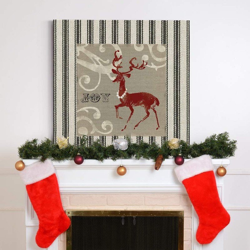 Renditions Gallery Joy Reindeer Wall Art, Cute Christmas & Winter Decor, White & Red with Striped Fabric Look, Premium Gallery Wrapped Canvas, Ready to Hang, 32 in H x 32 in W, Made in America