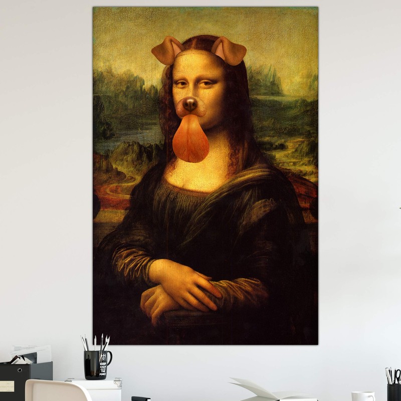 Renditions Gallery Mona Lisa with Snapchat Puppy Dog Filter Giclee Print Poster, 12x18,