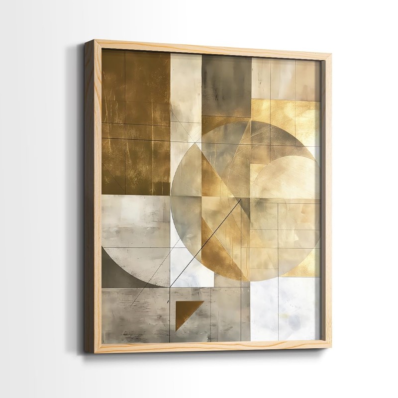 Renditions Gallery Set of 2 Peel & Stick Framed Prints, Abstract Wall Art, Geometric Design with Metallic Tones Wall Decor, Re-Stickable - Ready to Hang - 11"x14" - Natural Frame LT594