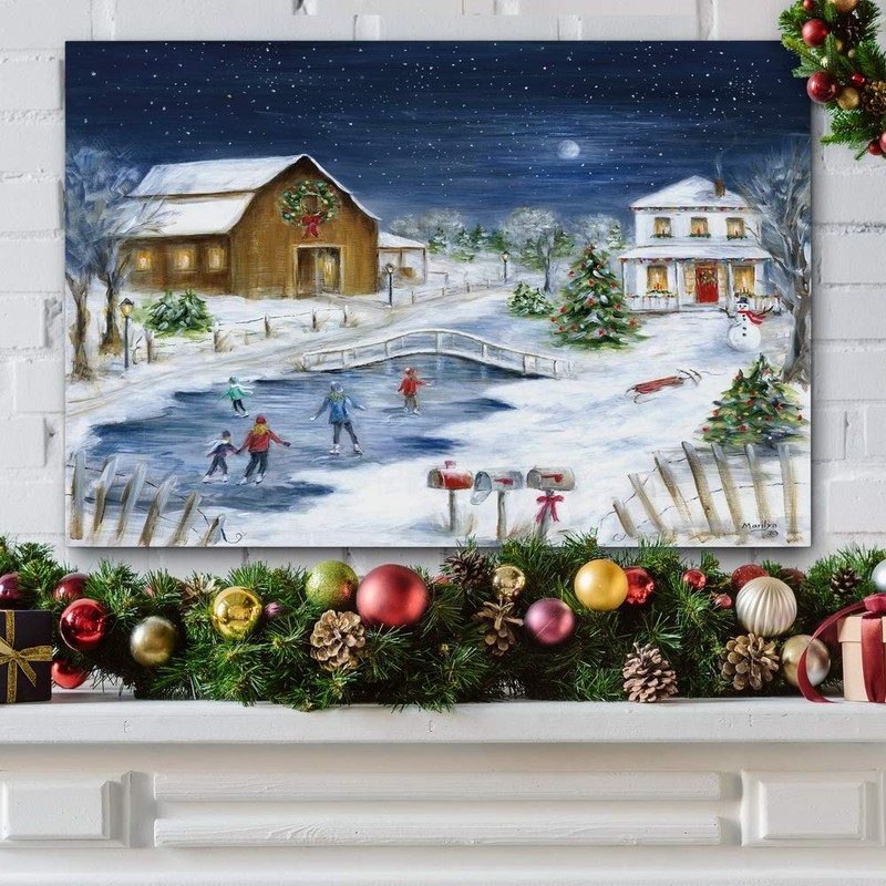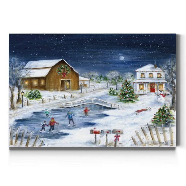 Renditions Gallery Winter Wonderland Wall Art, Idyllic Ice Skating Scene, Charming Christmas Decorations, Premium Gallery Wrapped Canvas Decor, Ready to Hang, 24 in H x 36 in W, Made in America