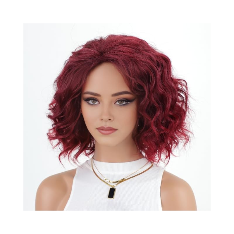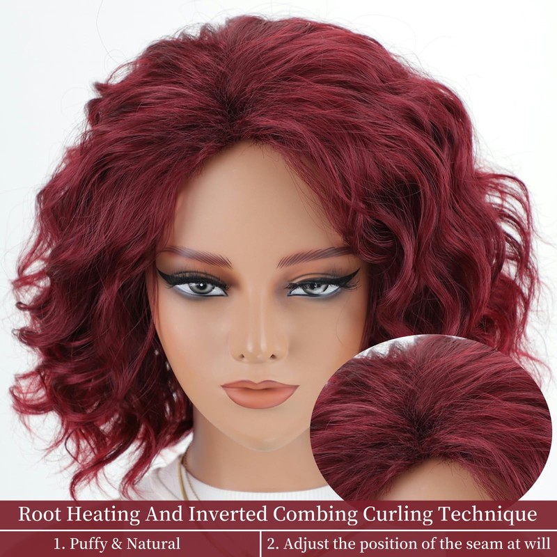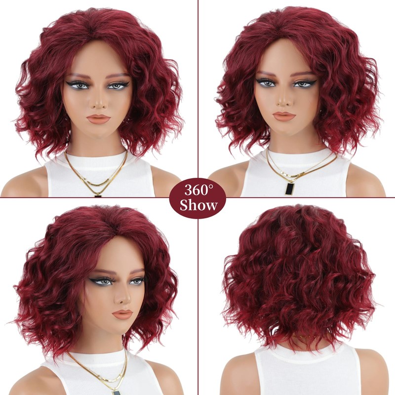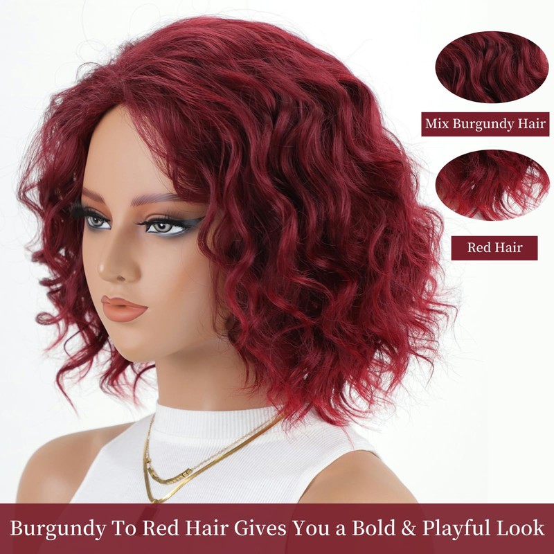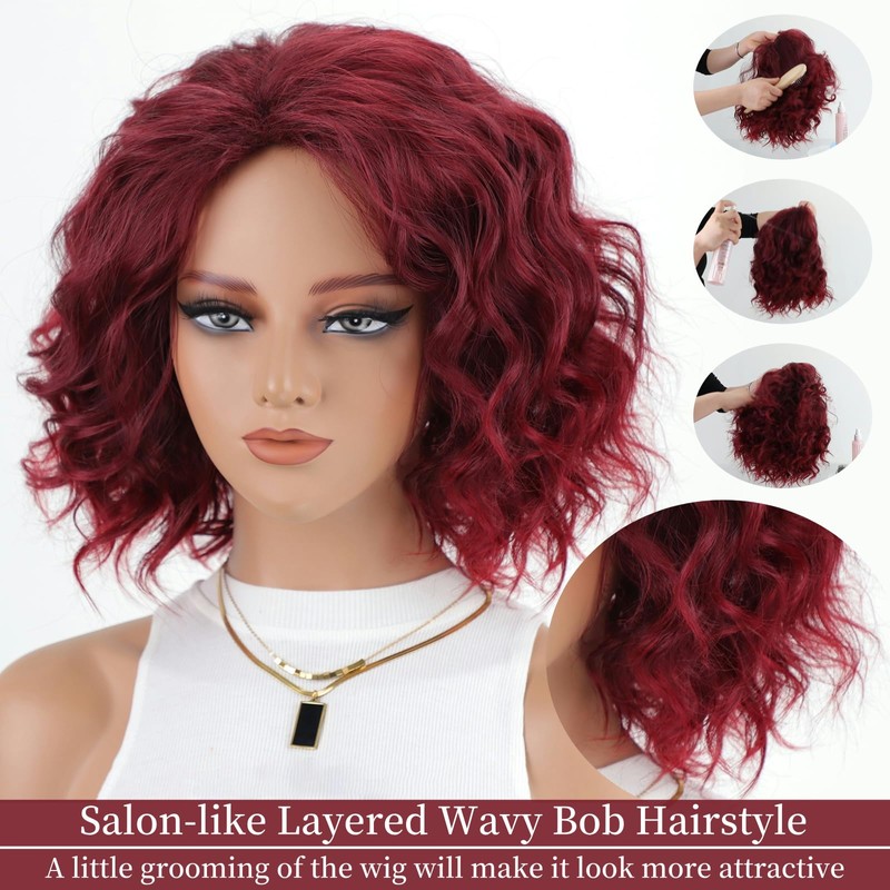 - Sexy and playful hair color: This 12-inch wavy Bob wig has an understated blend of wine red main color and bright red hair tips, making this classic Bob stylish and elegant, luxurious atmosphere with a playful energy