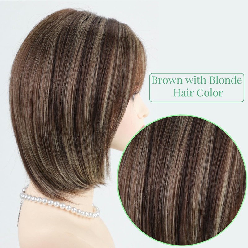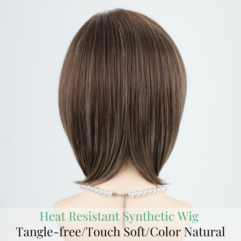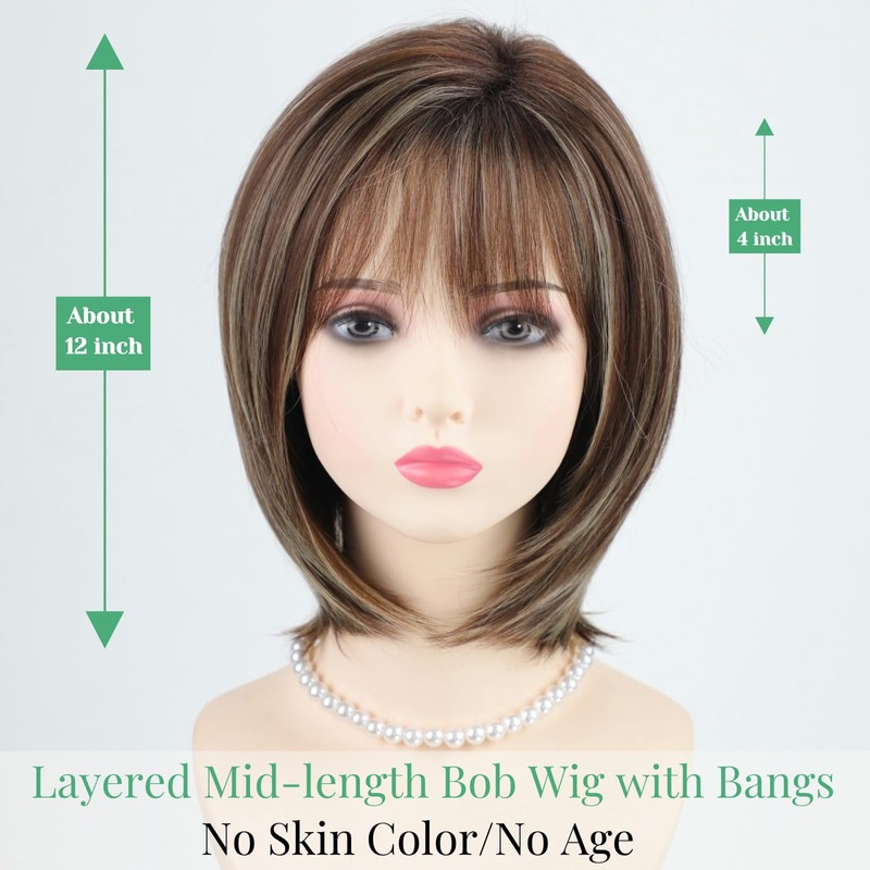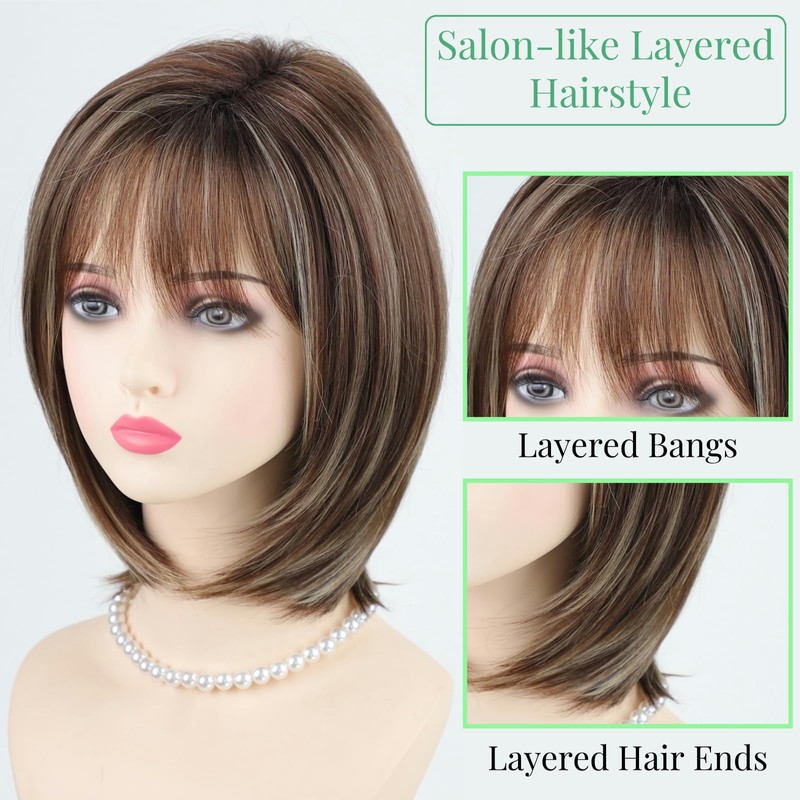 • Layered Bob Hairstyle: With a layered straight Bob with bangs, 12-inch medium length and 130g medium hair volume, this brown highlight wig is comparable to salon hair design, perfect for face shape and enhance temperament, and is a daily wig for most women to wear and go almost without styling