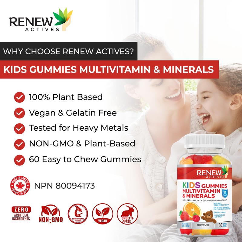- VIBRANT VITALITY BOOST: Renew Actives Kids Multivitamin Gummies are crafted with essential vitamins and minerals to promote vitality, energy, and overall health. These gummies help nurture kids' well-being at every stage of growth and development