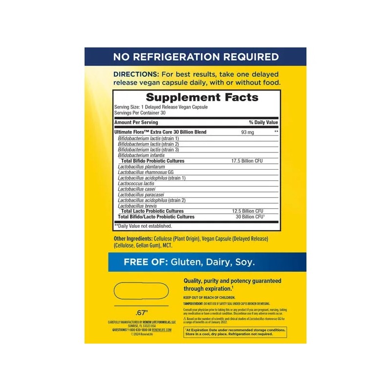 RenewLife Ultimate Flora Extra Care 30 cápsulas 🌿💊 | Probiótico premium con 50 mil millones de cultivos activos y 12 cepas para apoyar la salud digestiva, fortalecer el sistema inmune y mejorar el equilibrio intestinal. ✅ ¡Cuidado intestinal avanzado!