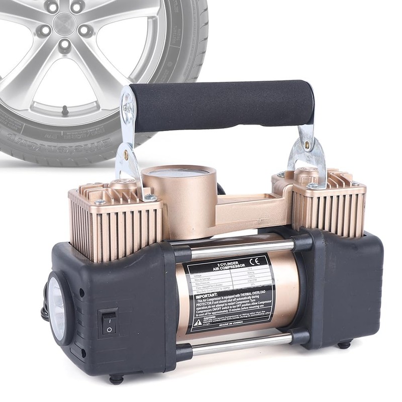 RENFANSHOP Double Cylinder Air Pump Kit, High Performance 12V Double Cylinder Car Auto Tire Inflator 150PSI Heavy Duty Air Pump Compressor Brown