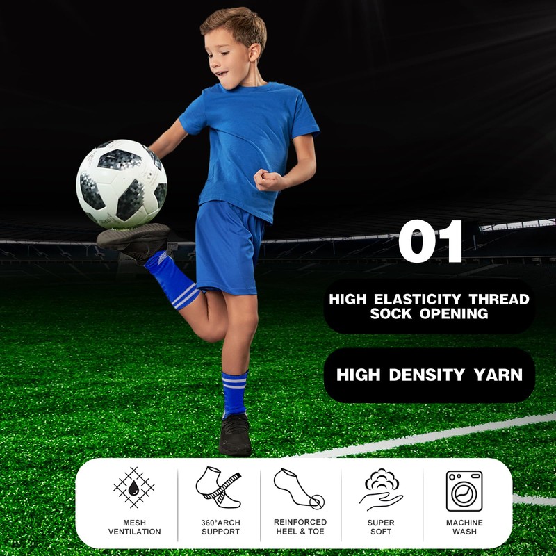- High elastic over knee socks:quality nylon material, the soccer shin guards provide durability and flexibility, perfect for active toddlers,anti-slip and suck sweat, elastic and air-permeable, easy to put on and take off