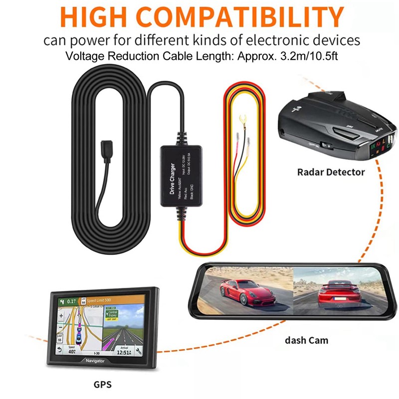 - Application: The USB cable hardwire kit is suitable for most models of USB devices, such as dash cam, mirror cam, GPS navigator and radar detector etc.