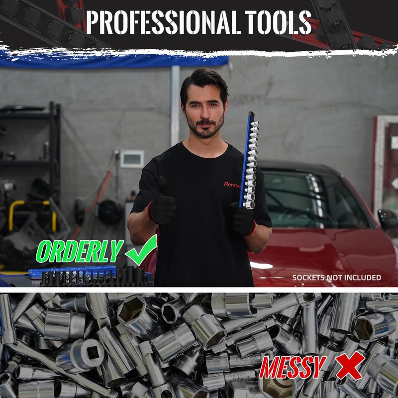 - AMPLE CAPACITY: Introducing Reniteco high-capacity tray socket organizer designed to meet your needs. It can hold up to 14 sockets, accommodating 1/4”x 14 sockets, providing you with a comprehensive storage solution