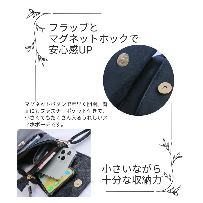 - Stylish Smartphone Pouch: This shoulder bag has a simple yet stylish design. It can also be used as a smartphone pochette, so it has a pocket that can hold your smartphone or mobile phone. Lightweight and fashionable item that goes well with any outfit