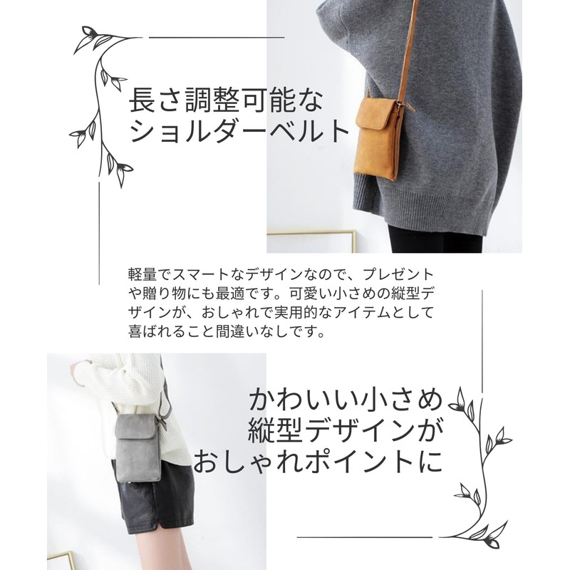Renlock Women's Smartphone Pouch, Shoulder Bag, Smartphone Pochette, Sub Bag, Wallet, Shoulder Pouch, Adjustable Length, Crossbody Hanging, Multifunctional, Lightweight, Zipper Pocket, Magnetic