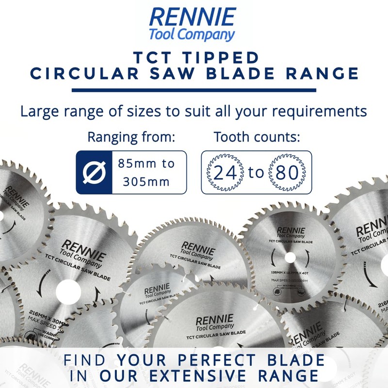 Rennie Tool 165mm x 20mm x 48T TCT Cordless Circular Wood Saw Blade. Fits Bosch Makita Ryobi Dewalt DC390, DWE007, DCS391, DC391N Circular Saws etc, Thin Kerf 165mm Cordless Circular Wood Saw Blade