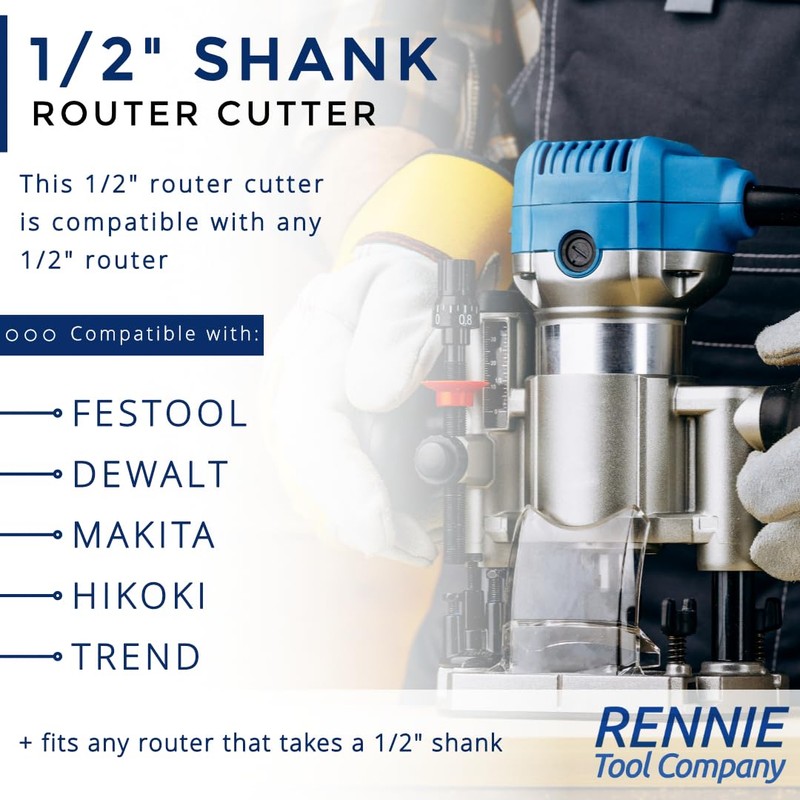 - This 1/2" shank router cutter is compatible with all the leading brands of hand held routers, it is compatible with the Dewalt, Makita, Festool, Hikoki, Vonhaus Trend router etc. As long as your router takes a 1/2" shank these will fit.