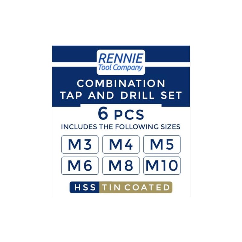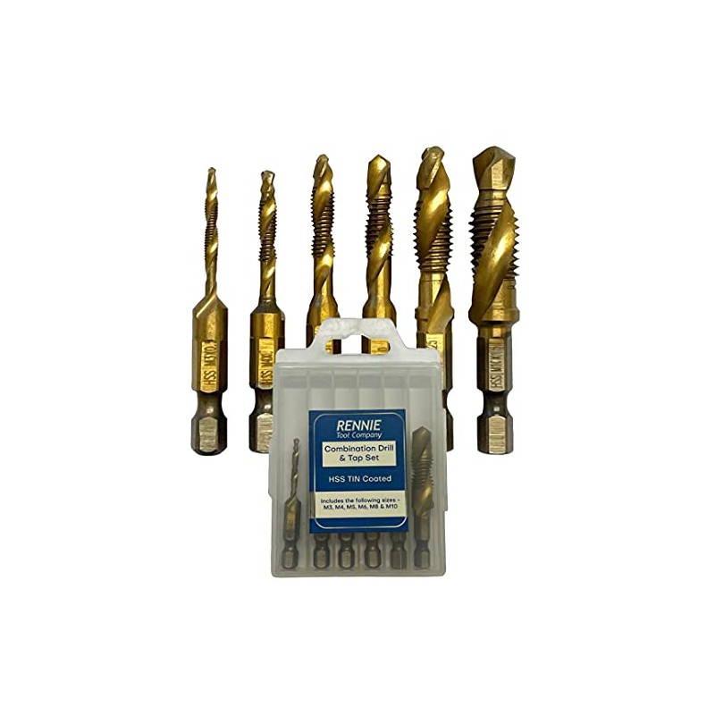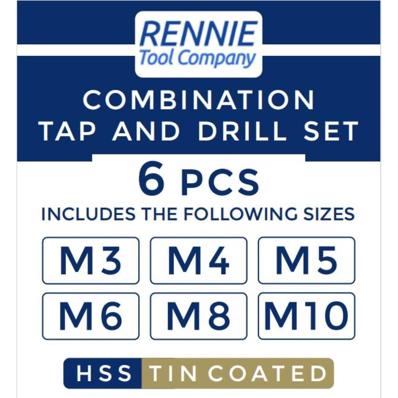 Rennie Tools - 6 Piece Combination Tap And Drill Set Titanium Coated M3 M4 M5 M6 M8 M10 Hex Shank Metric Coarse