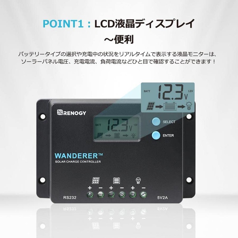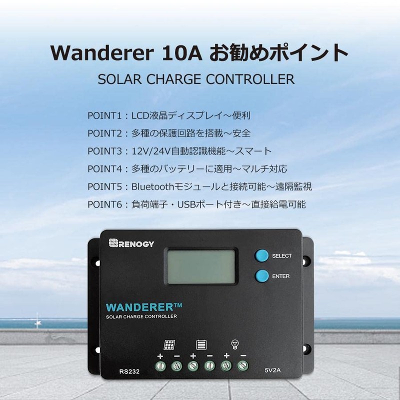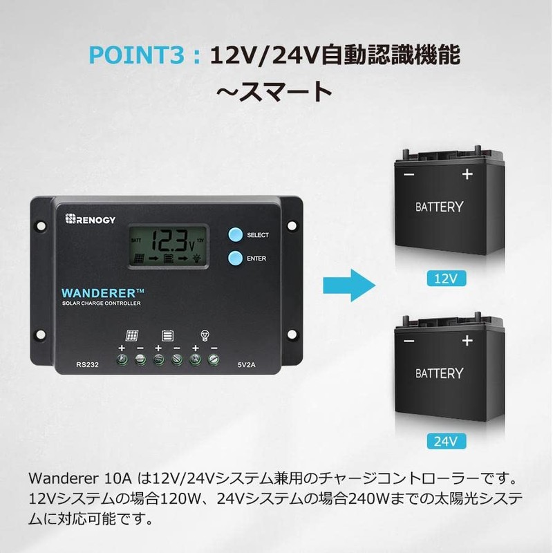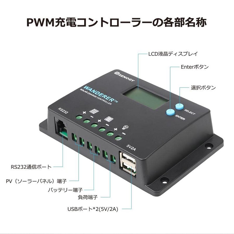 RENOGY PWM Multifunction Solar Charge Controller, 10 A, 12 V 24 V, USB 5V Output, Solar Power Only (English Language Not Guaranteed)