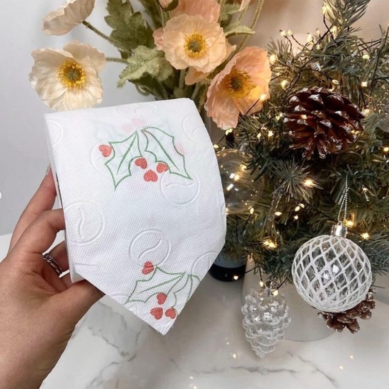 - Festive Designs: Elevate your holiday celebrations with our Renova Christmas Toilet Paper - 4 packs of 4 rolls Moreover, it features whimsical Christmas-themed designs like Christmas socks, Christmas trees, rocking horses, holly, and, stars
