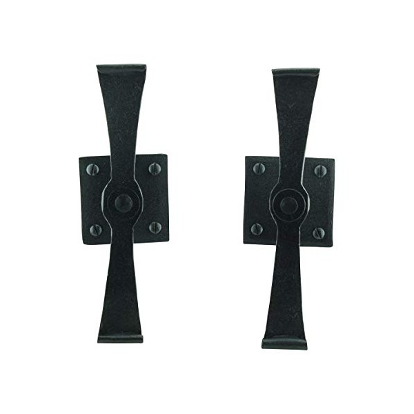 - DURABLE MATERIAL - Constructed from solid Wrought Iron, they are sure to hold your shutters strong against almost any kind of storm. The strength and sturdiness of our Wrought Iron Shutter Dogs together with its black rust resistant coat finish gives it an antique refined rustic appearance with an extended life.