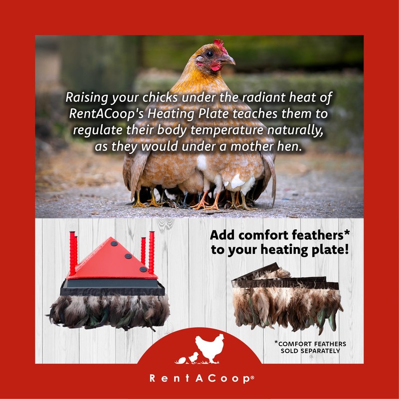 - EXACTLY LIKE A MOTHER HEN! Chicks stay warm and cozy underneath our heating plate, just like they would naturally. Simulate a mother hen even more by purchasing our comfort feathers to add!