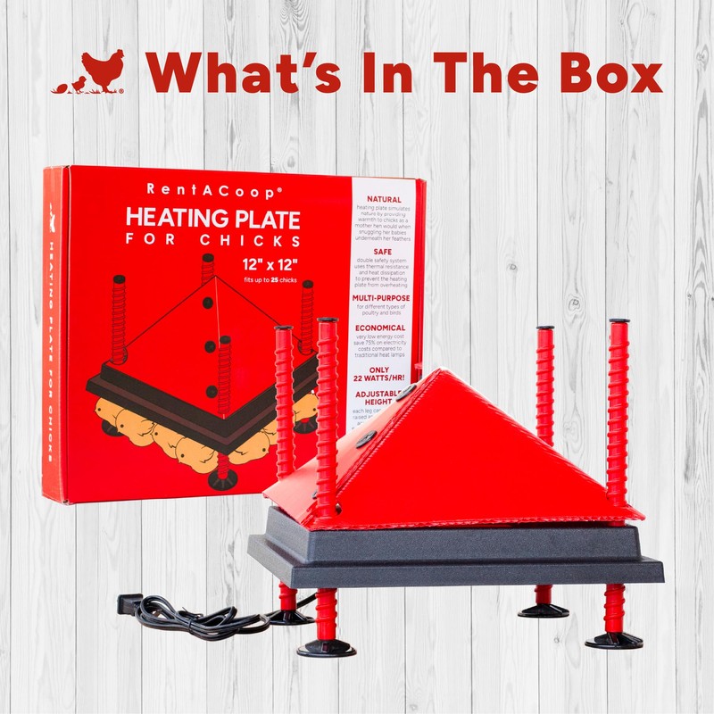 - SAVE MONEY! A resourceful and safer alternative to a heat lamp, see our chart for more details. Less of a fire risk! 12”x12” Heating Plate warms up to 20 chicks