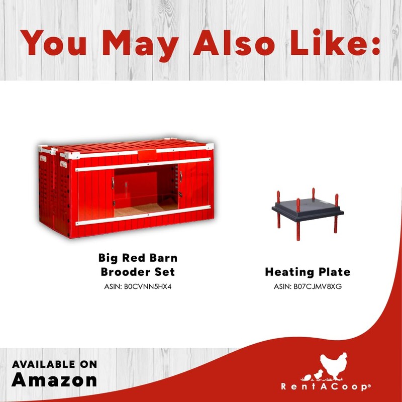 - You Might Also Like: | RentACoop 12x12 Heating Plate; RentACoop 2.5 Pound Chick2Chicken Medium Port Feeder and 64 Ounce (2 Liter) Drinker Set; RentACoop Big Red Barn Chick Brooder Set; RentACoop Chick Swing and Accessory Stand Set; RentACoop Little Red Barn Brooder; and MORE!
