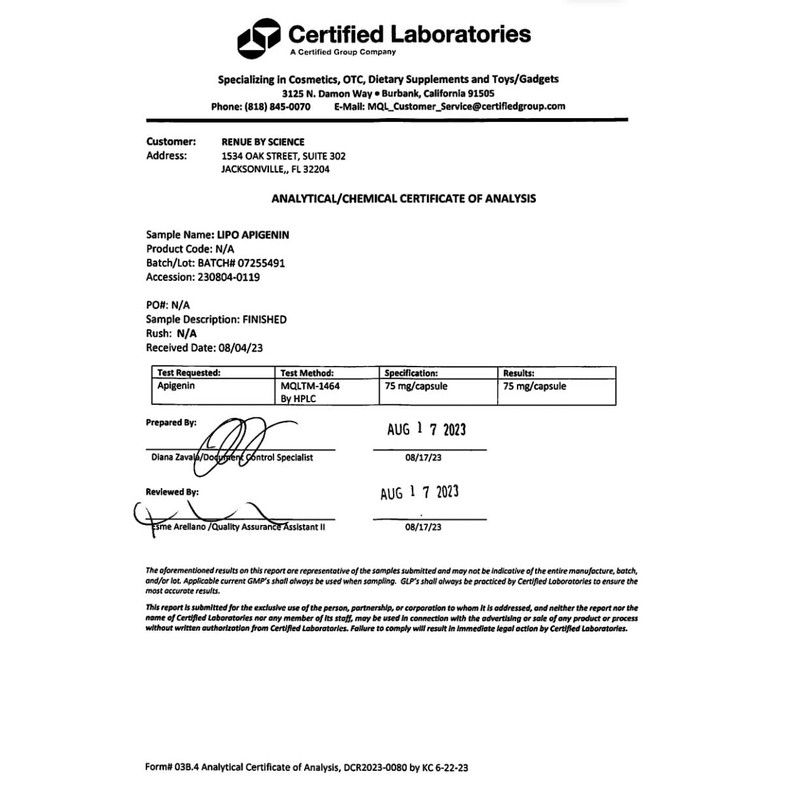 RENUE Liposomal Apigenin Supplement 75 mg - Bioavailable Formula for Increase...