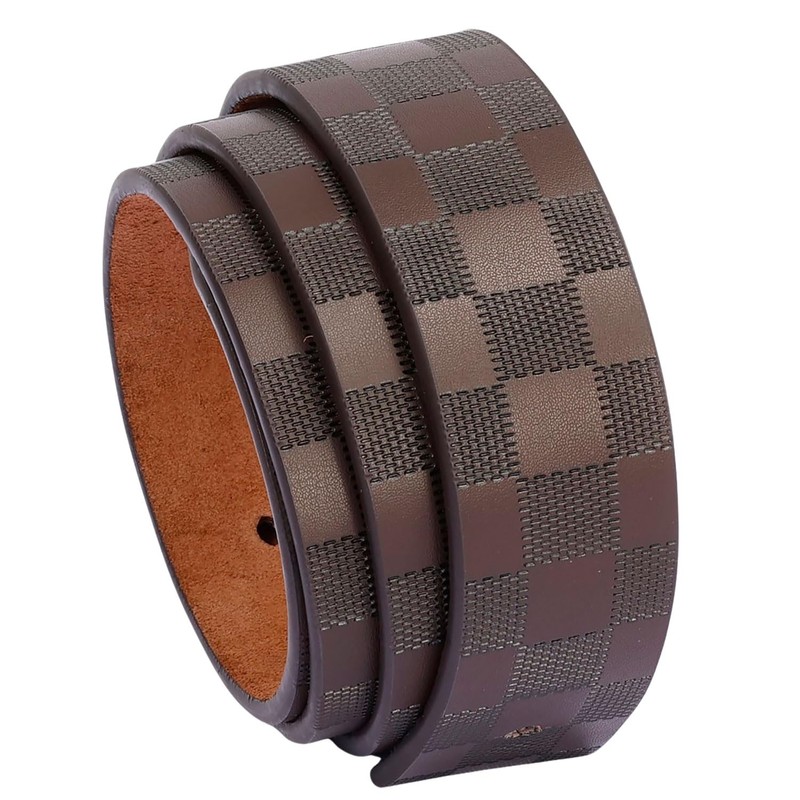 renwoxing Men's Leather Belt, 1.5 inch Checkered Pattern, Pin Buckle, Black and Coffee (coffee, 43"-45" Width Adjustable)