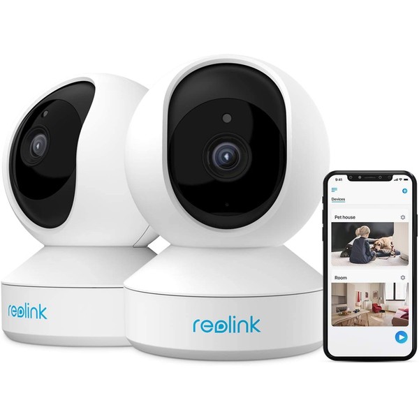 - REOLINK Home Security Camera System, 3MP HD Plug-in Indoor WiFi Camera, Pan Tilt Pet Camera, Baby Monitor, Night Vision, 2 Way Audio, Motion Alerts, Local microSD Card Storage, E1(2 Pack)
