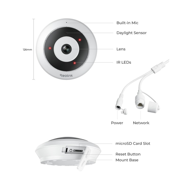 REOLINK 6MP PoE IP Fisheye Camera with 360° View, Surveillance for Home/Office Security, Smart Human Detection, Two Way Talk, Ceiling/Wall/Desk Mount, Multiple Panoramic Display Views, FE-P(White)
