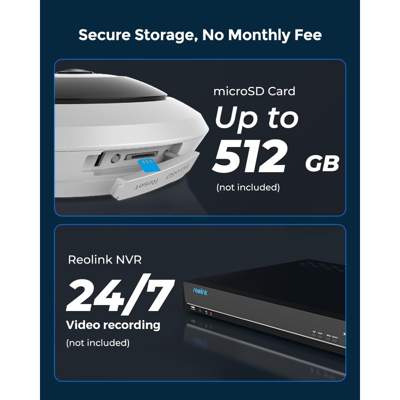 - Secure Local Storage Options: Home Security Cam supports up to 512GB microSD card and Reolink NVRs (both sold separately). Playing back stored videos is easy with smart event filters, and no subscription fee is needed.