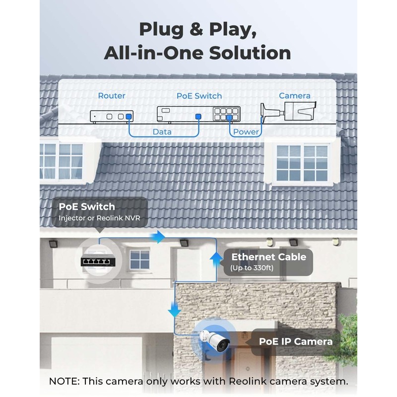 • MUITIPLE RECORDING OPTIONS: This PoE surveillance camera supports recording 24/7 or motions detected to a 128GB micro SD card(not included), FTP server, NAS and Reolink PoE NVRs, which wouldn’t require extra charges or subscription. Extra guarantee for security, zero-fee.