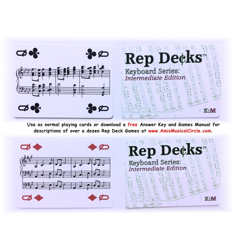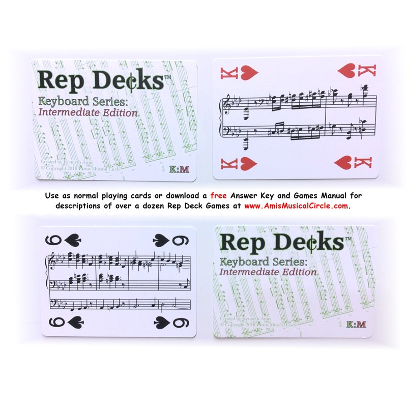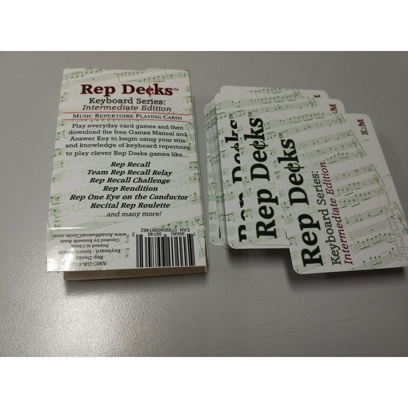 RepDecks son tarjetas de reproducción de repertorio musical que te permite jugar a más de una docena de divertidos y emocionantes juegos que prueban, desafían y mejoran tu conocimiento de piano, órganos y música de arpóstago. En el centro de cada tarjeta aparece un extracto melodico de las piezas de teclado estándar y más populares. Estos extractos no se duplican en la edición de introducción o edición avanzada. Esta cubierta de 54 tarjetas incluye las 13 filas en sus trajes habituales, además de tarjetas rojas y negras. Las tarjetas tradicionales de una cara tienen una imagen de "eball" en ellas para recordar a los jugadores que son. Juega a diarios juegos de cartas y luego descarga el manual de juegos de la serie de teclado y la tecla de respuesta para empezar a utilizar tus deseos y conocimientos de piano, órgano y repertorio de Harpshord para jugar a juegos de repelentes inteligentes como Rep. Recolectar, repele el relé, repita el repetición de equipo, repetición de rutinas, repita el ojo en el conductor, repetición y muchos más. O compone tus propios juegos musicales para jugar tú mismo o con otros. El manual de juegos y la llave de respuesta no están incluidos con la cubierta de tarjetas, pero son libres de ver, descargar e imprimir en cualquier momento. La caja del portabrocas que las tarjetas están empaquetadas se ajustará cuando sea nuevo y se desenvuelve primero, pero después de unos pocos usos, la caja se aflojará y será fácil de abrir.