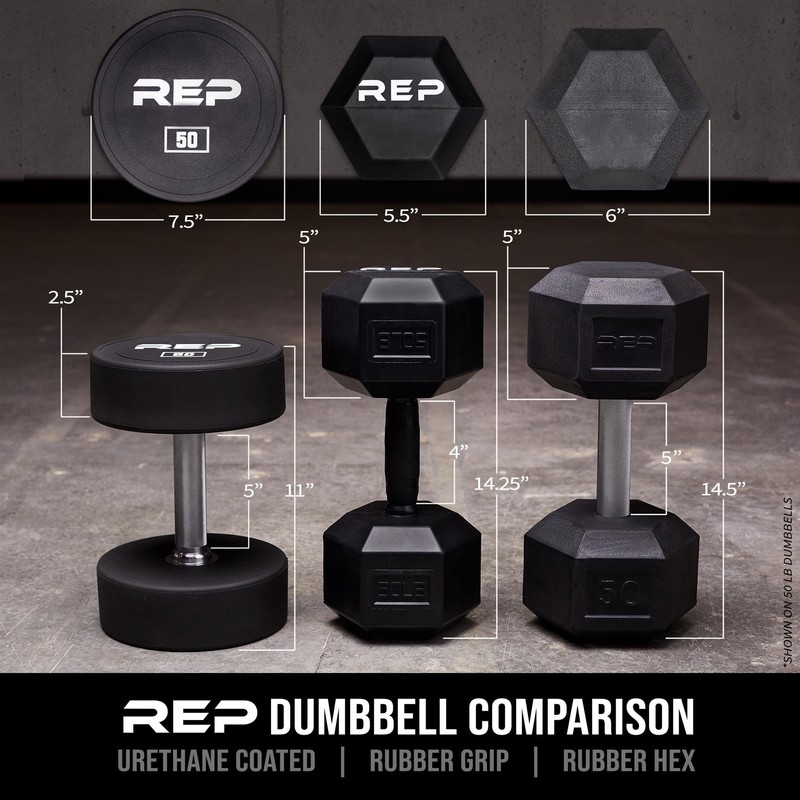 Rep Rubber Grip Dumbbells - 55 lb Single Dumbbell
